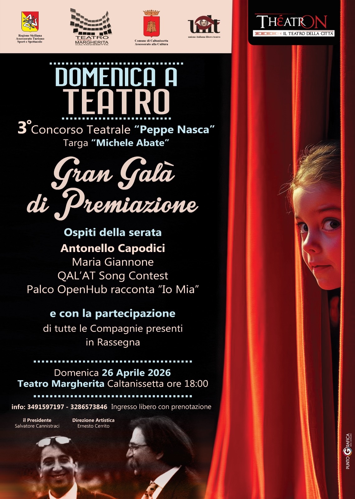 La rassegna si terrà dal 26 Ottobre 2025 al 26 Aprile 2026 ed è sostenuta, oltre che dal Comune di Caltanissetta, anche dall’Assessorato al Turismo Sport e Spettacolo della Regione Sicilia e da UILT (Unione Italiana Libero Teatro).