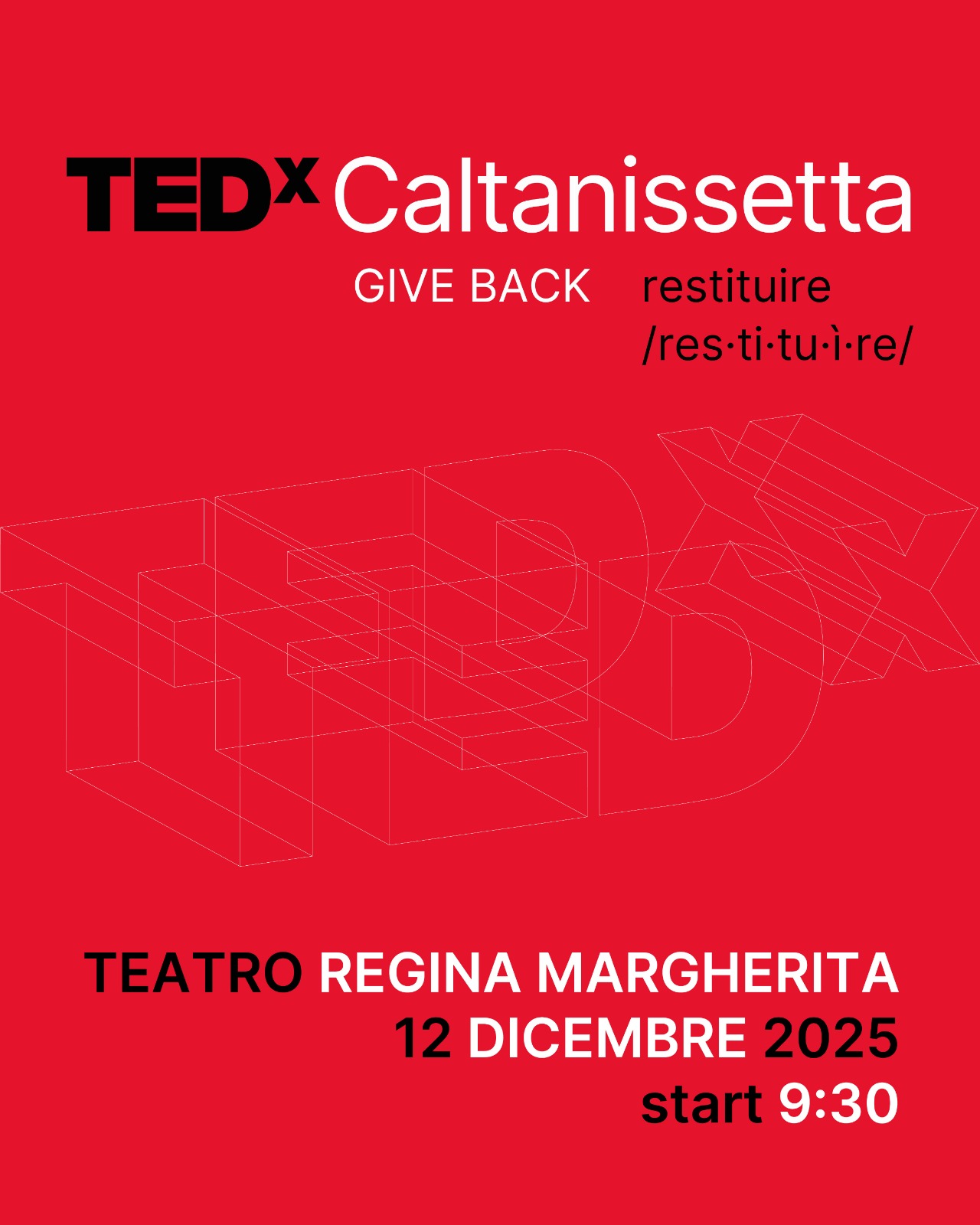 L’evento prenderà vita venerdì 12 dicembre a partire dalle 9.30, nello storico Teatro Regina Margherita, con una giornata dedicata a riflessioni, incontri e nuove prospettive. Portare TEDx a Caltanissetta significa aprire uno spazio di dialogo e innovazione in un territorio ricco di storie e potenzialità.