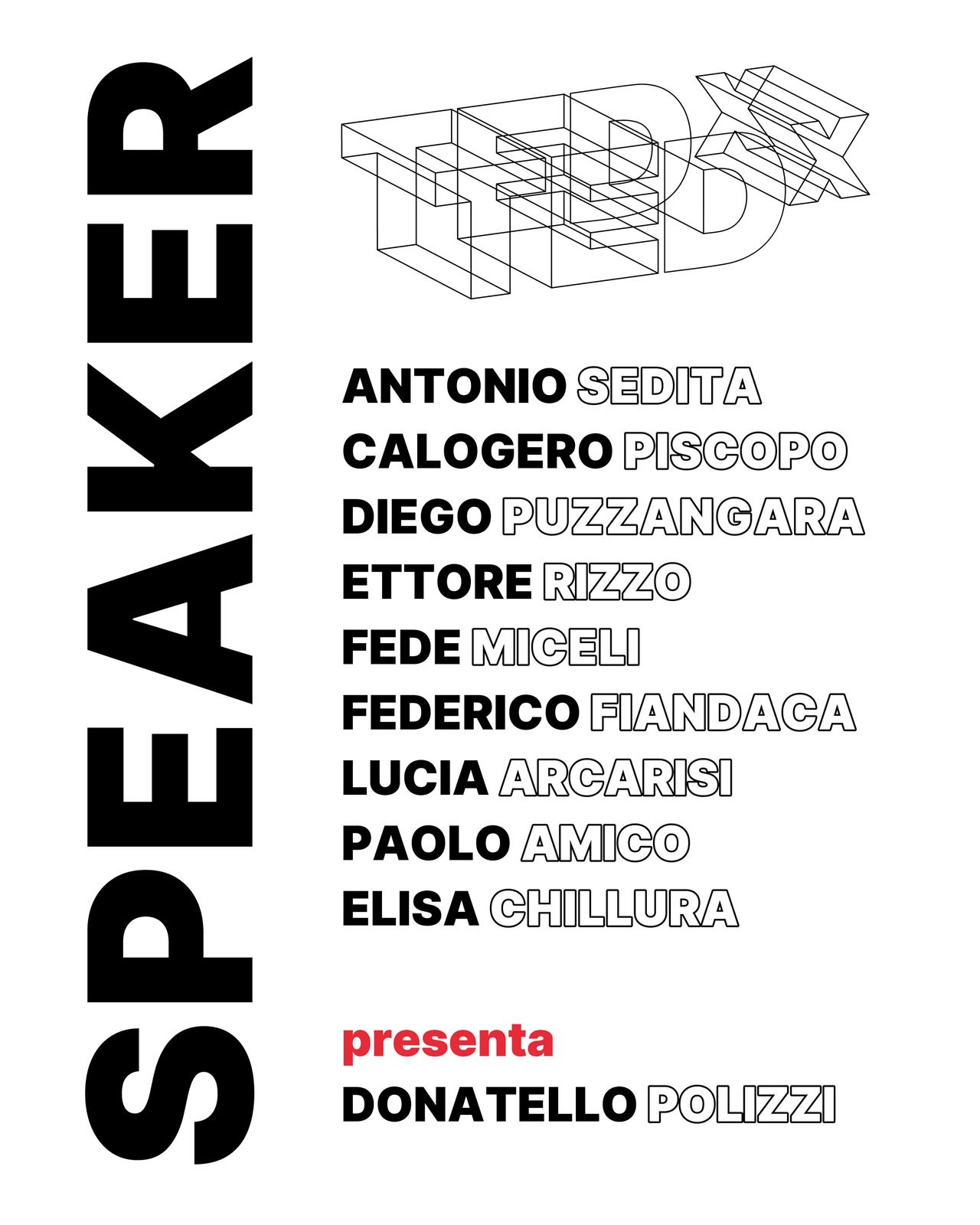 Gli speaker di questa edizione saranno 9 e tutti siciliani: Antonio Sedita, Calogero Piscopo, Diego Puzzangara, Ettore Rizzo, Fede Miceli, Federico Fiandaca, Lucia Arcarisi, Paolo Amico ed Elisa Chillura.