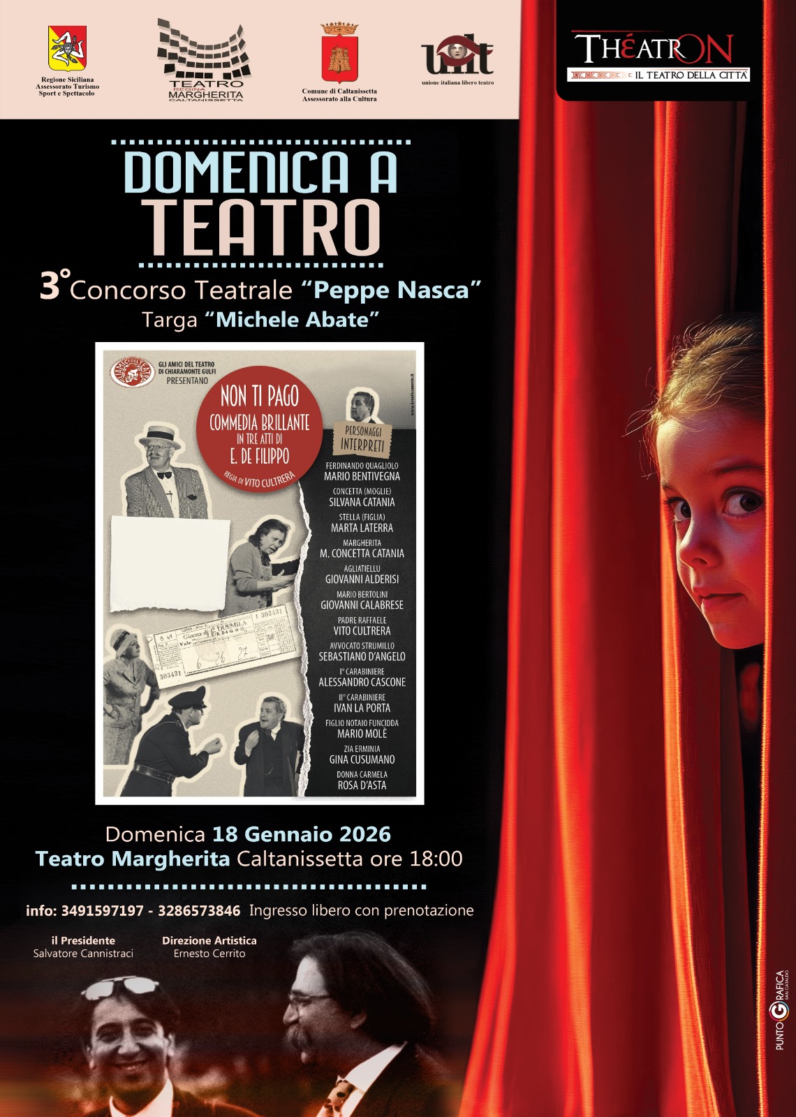 La rassegna si terrà dal 26 Ottobre 2025 al 26 Aprile 2026 ed è sostenuta, oltre che dal Comune di Caltanissetta, anche dall’Assessorato al Turismo Sport e Spettacolo della Regione Sicilia e da UILT (Unione Italiana Libero Teatro).