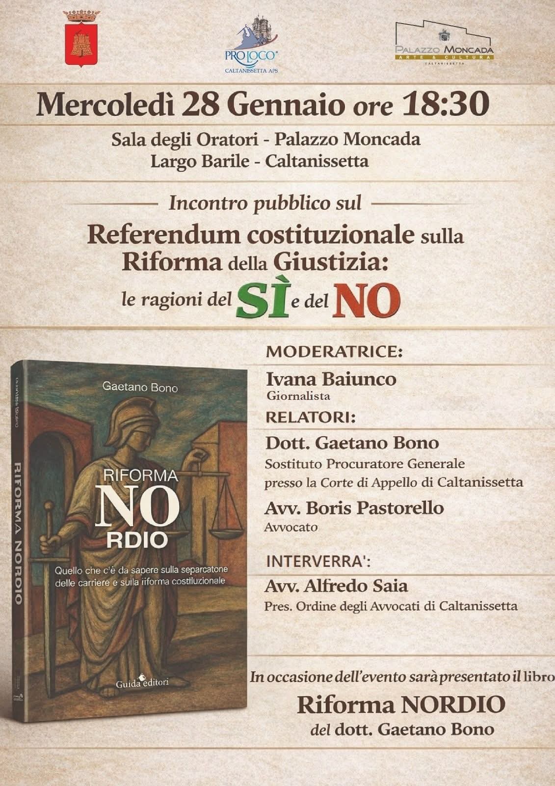 Durante l'evento sarà presentato il libro "Riforma Nordio" del Dott. Gaetano Bono.
