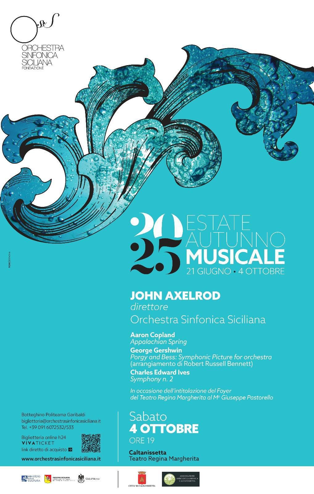 Dopo questo momento altamente simbolico, il Teatro Margherita aprirà le porte alle ore 19:00 all’Orchestra Sinfonica Siciliana, che sotto la direzione di John Axelrod, offrirà al pubblico un affascinante viaggio nella musica sinfonica statunitense di Aaron Copland con "Appalachian Spring", George Gershwin con "Porgy and Bess: Symphonic Picture for orchestra" (arrangiamento di Robert Russell Bennett) e Charles Edward Ives con "Symphony No. 2".