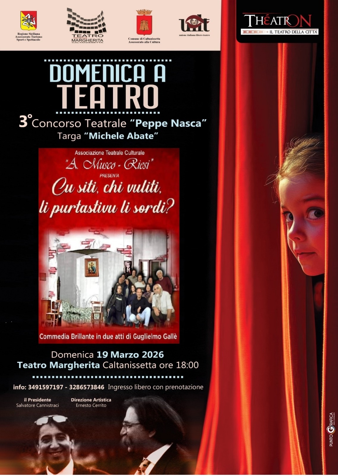 La rassegna si terrà dal 26 Ottobre 2025 al 26 Aprile 2026 ed è sostenuta, oltre che dal Comune di Caltanissetta, anche dall’Assessorato al Turismo Sport e Spettacolo della Regione Sicilia e da UILT (Unione Italiana Libero Teatro).