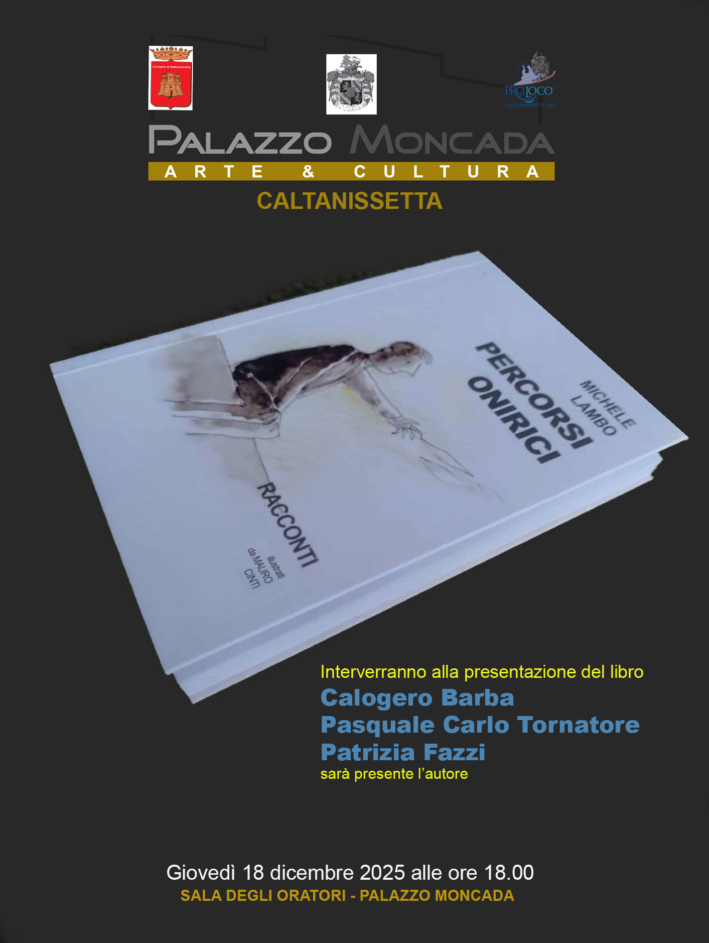 La presentazione del libro si terrà presso la Sala degli Oratori di Palazzo Moncada e interverranno, oltre all'autore, anche Calogero Barba, Pasquale Tornatore e Patrizia Fazzi.