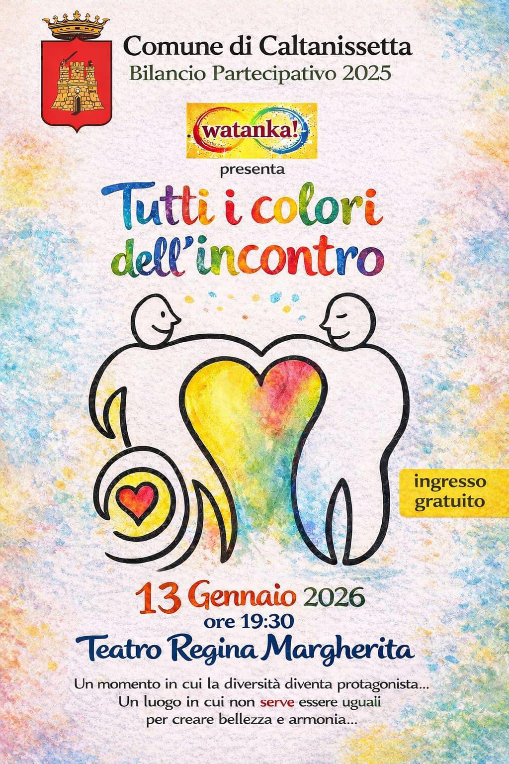 Martedì 13 gennaio alle ore 19:30 il Teatro "Regina Margherita" di Caltanissetta ospiterà "Tutti i colori dell'incontro", spettacolo conclusivo del progetto "3...2...1...InterAzione!".