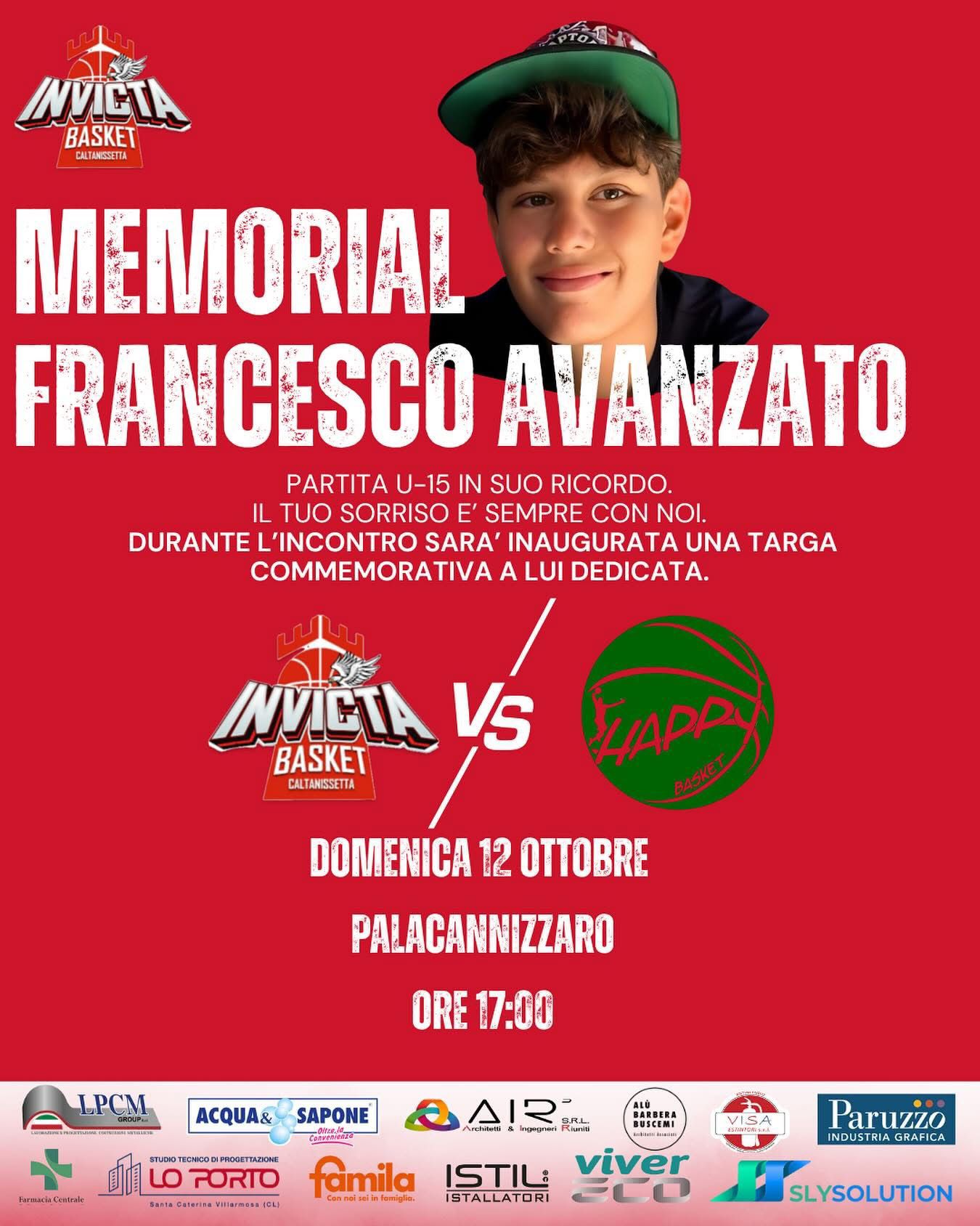 In moemoria di Francesco Avanzato si svolgerà una partita di Basket con squadre U-15 dell'Invicta vs Happy Basket Palermo