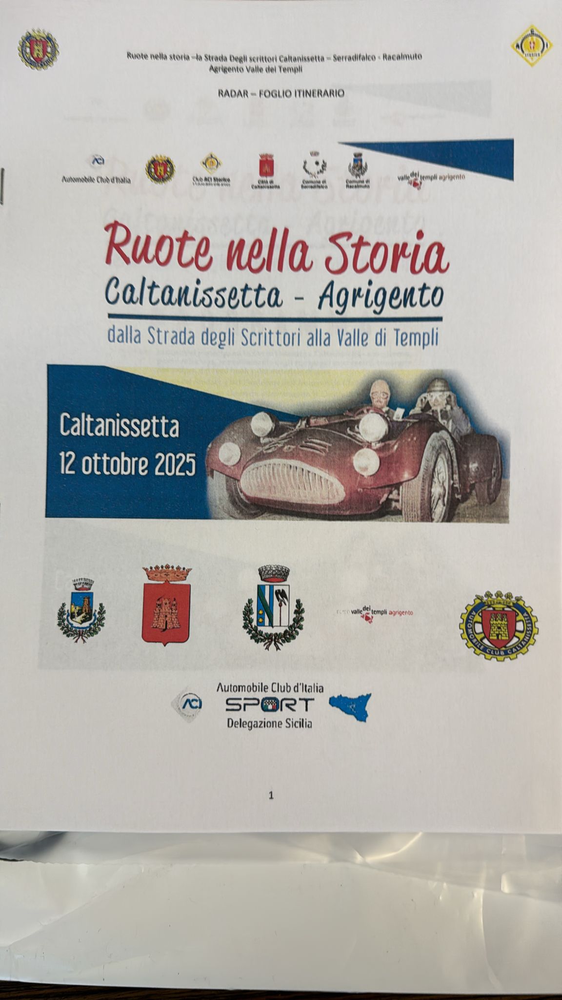 L’Automobile Club Caltanissetta, in collaborazione con ACI Storico, ha programmato per il giorno 12 ottobre 2025 la manifestazione automobilistica e culturale denominata “Ruote nella Storia”.